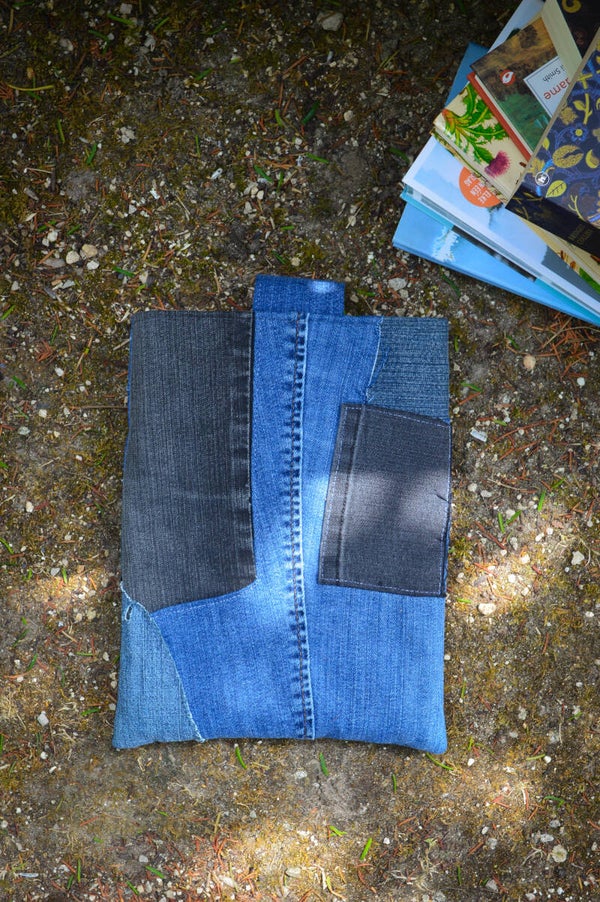 Made from repurposed denim trousers, this book sleeve is a timeless and durable way to keep your books from harm in your day-to-day life.