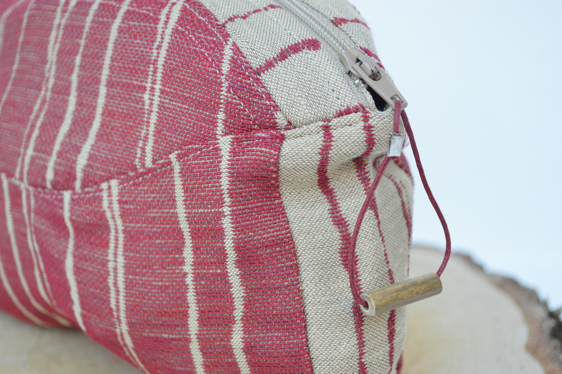 Connected to the zipper with a cord in dark pink is one piece of bamboo (2,5 cm).