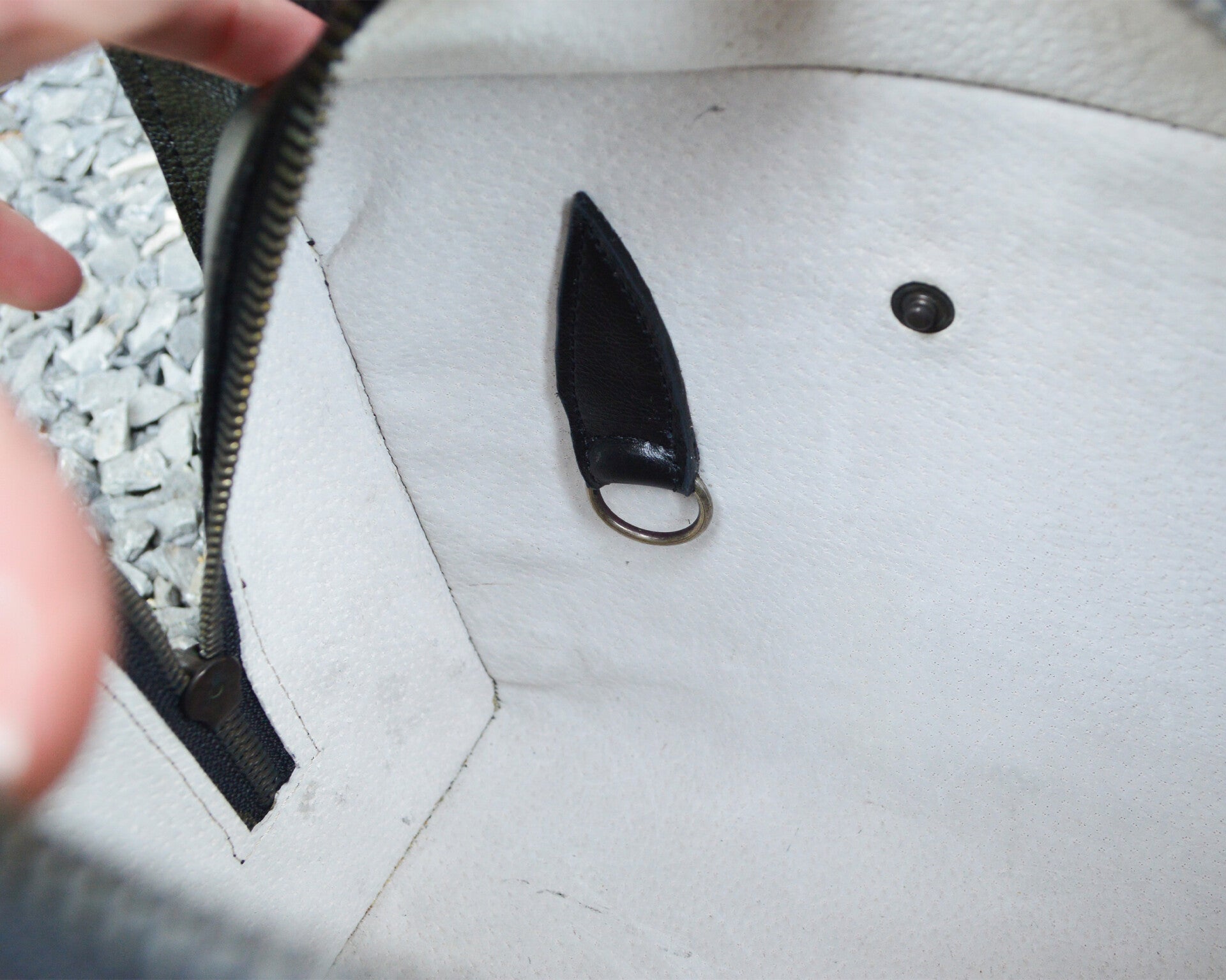 This bag has some small discolorations on the inside (visible in the pictures), which is why I am selling it at a reduced price. Mind that this bag isn’t second-hand, it hasn’t been used, the leather just reacted a bit funny.